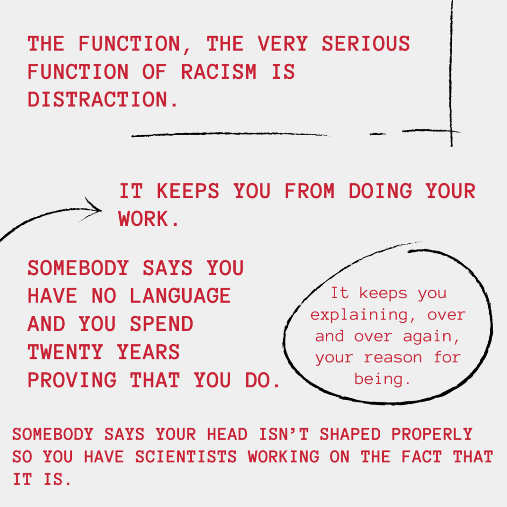 “I wrote the first book because I wanted to read it. I thought that kind of book, with that subject—those most vulnerable, most undescribed, not taken seriously little black girls—had never existed seriously in literature. No one had ever written about them except as props. Since I couldn’t find a book that did that, I thought, ‘Well, I’ll write it and then I’ll read it.’ It was really the reading impulse that got me into the writing thing.